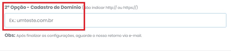 Informe o endereço do domínio (ex umteste.com.br);