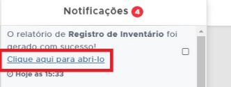 Após apresentar a notificação, clique no ícone de notificações e acesse o inventário clicando na opção Clique aqui para Abri-lo;