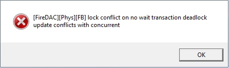 [FireDAC][Phys][FB] lock conflict on no wait transactiondeadlockupdate conflicts with concurrent