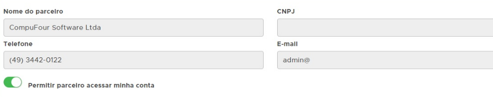 Nos dados do parceiro, é possível habilitar o acesso do parceiro a sua conta, para prestar suporte ou outras questões a serem alinhadas pela Revenda.