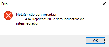 434 - Rejeição: NF-e sem indicativo do intermediador
