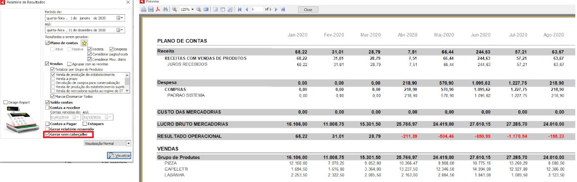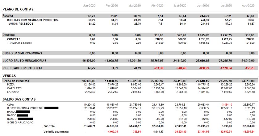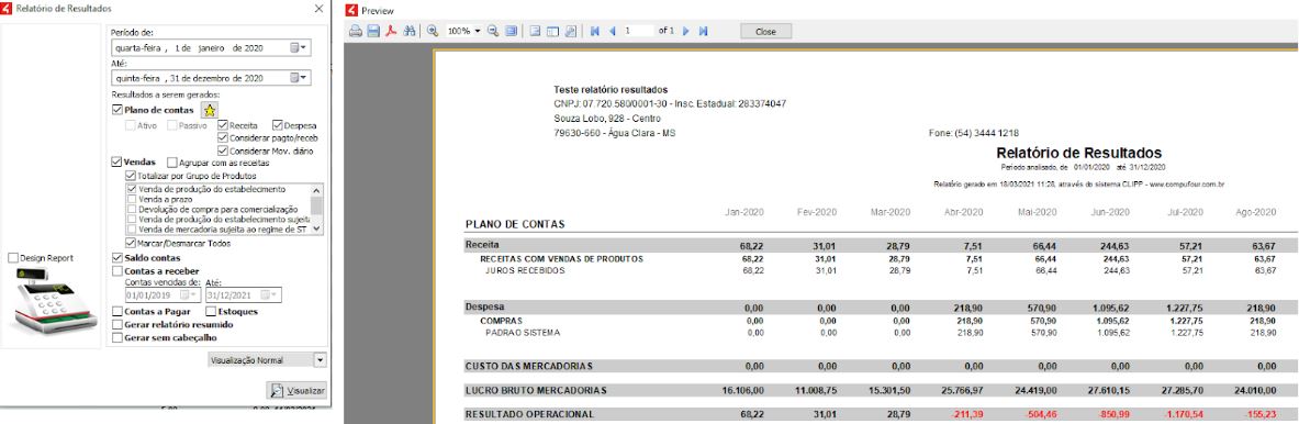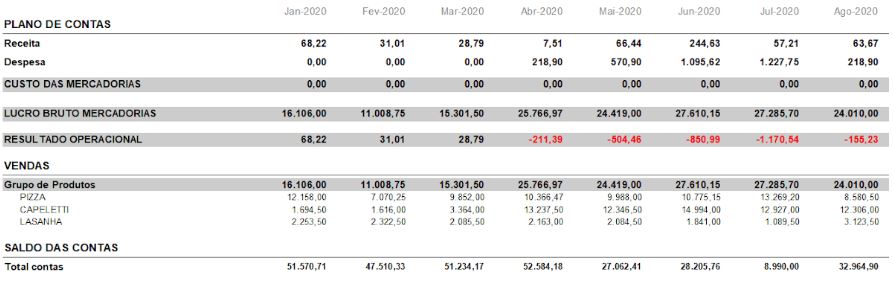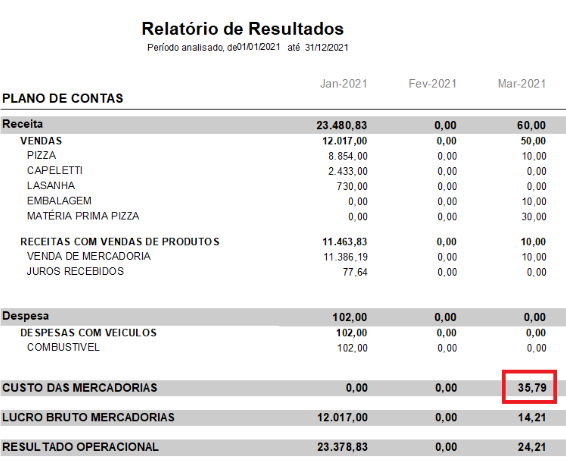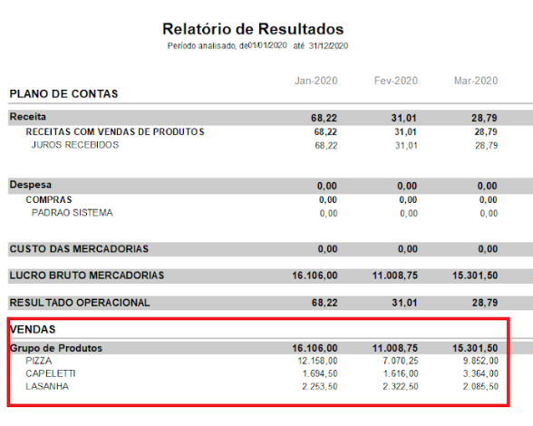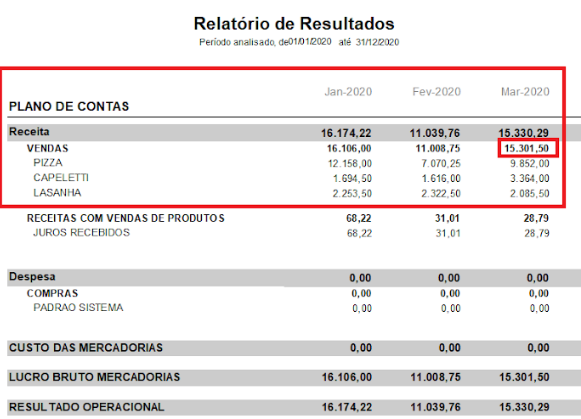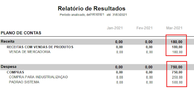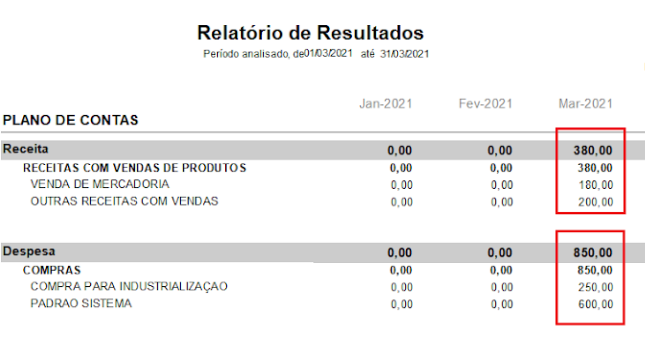O Relatório de Resultados separa as contas, conforme o plano de contas.