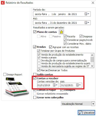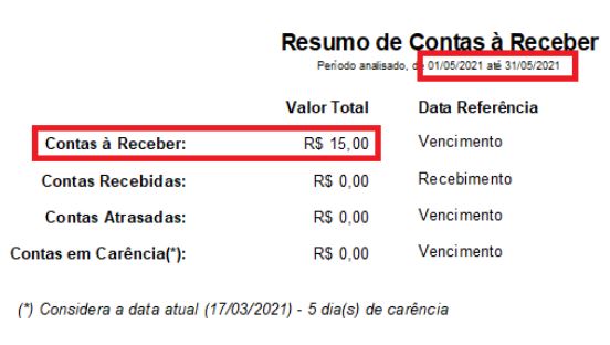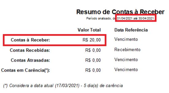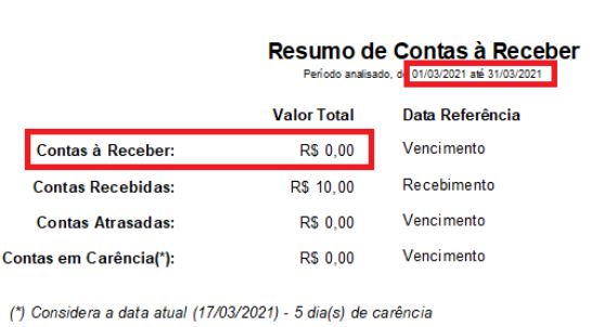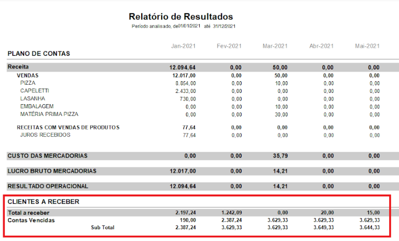 No Relatório de Resultados é possível exibir o valor das contas a receber no mês e também o valor das contas vencidas.