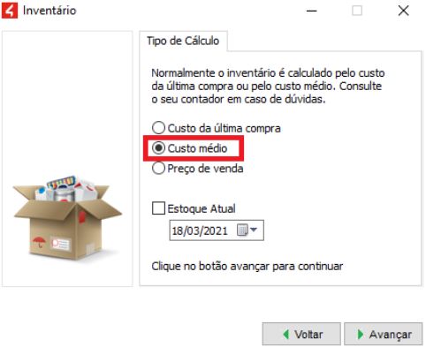 No Clipp, esses valores podem ser verificados no Módulo Estoque - Menu Arquivo - Inventário: