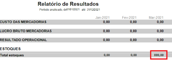 Esses valores podem ser visualizados no Relatório de Resultados: