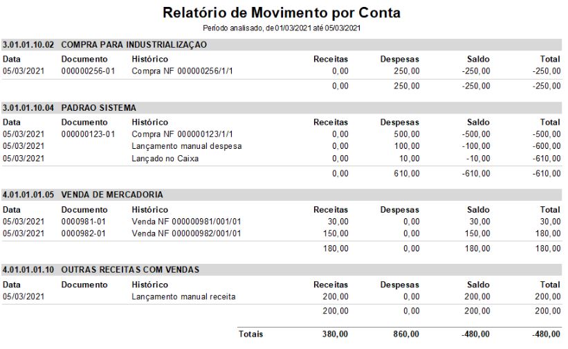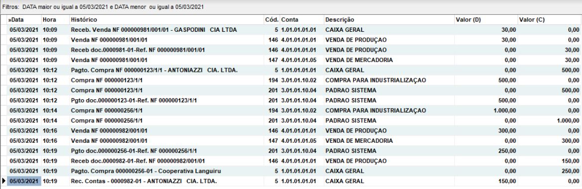 Plano de Contas - Movimento do dia 05/03/2021 (Exemplo);