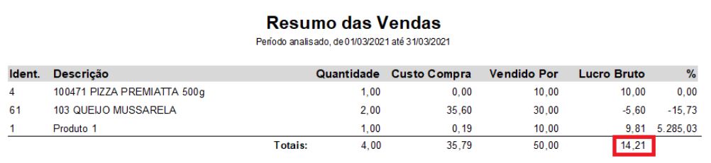 No Módulo Nota Fiscal de Venda - Menu Relatório - Resumo das Vendas, podemos verificar o valor referente ao lucro bruto das mercadorias.