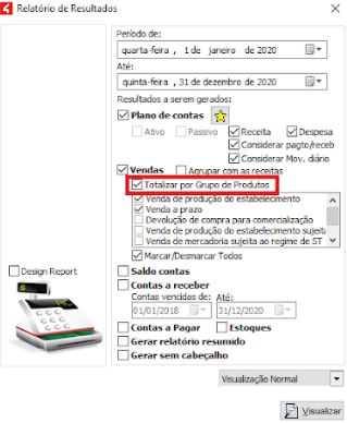 Ainda é possível totalizar por grupo e produtos, conforme visto abaixo: