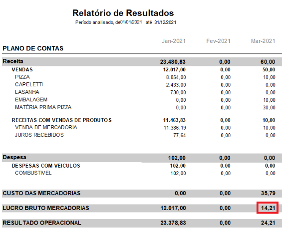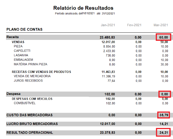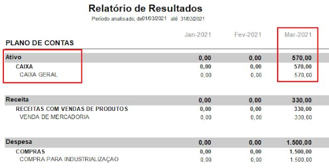 No Relatório de Resultados, obtemos os mesmos valores, conforme imagens abaixo: