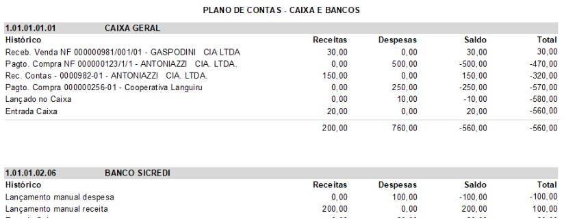 É importante que as contas sejam utilizadas corretamente para gerar os valores no relatório. Por exemplo; uma conta de despesas no plano de contas, deve ser usada para despesas, caso contrário, não será exibida nas despesas.