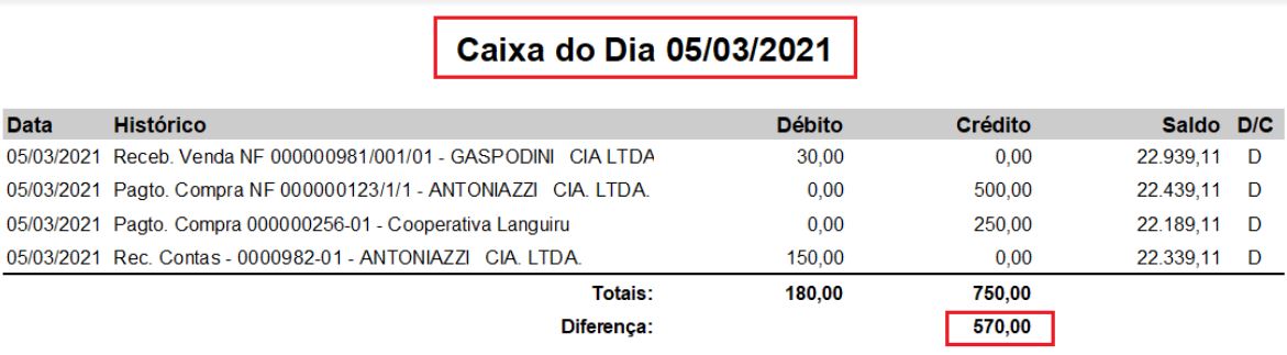 No módulo Caixa - Menu Relatórios - Caixa do Dia: