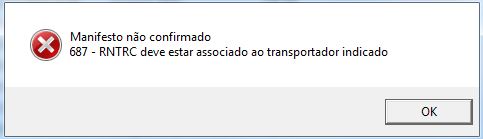 Ou, mensagem de RNTRC inválido.