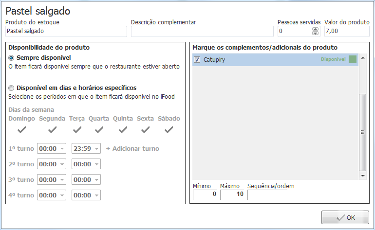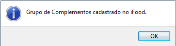 Após concluir a configuração do item, clique em ok para realizar o envio para o IFood.