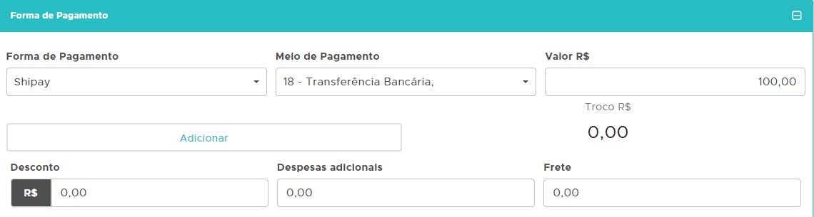 Na tela de forma de pagamento, selecione Shipay