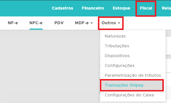 A função está disponível em Fiscal - Outros - Transações Shipay
