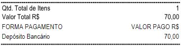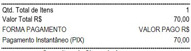 Em seguida, basta proceder com a emissão da Venda, o comprovante será impresso com a informação do meio de pagamento utilizado, aqui estão dois exemplos, PIX e Depósito Bancário: