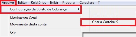 Clique no menu Arquivo - Configuração de boleto de cobrança e escolha a carteira 09.