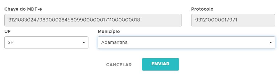 Em seguida, preencha a UF do encerramento (destino final), o município e clique em ENVIAR;