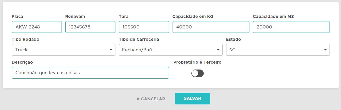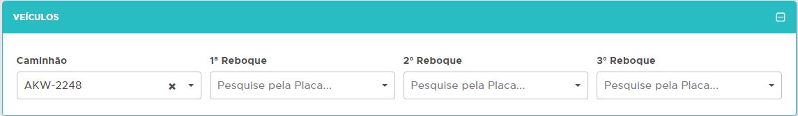 Nos veículos lance o veículo responsável pelo transporte da mercadoria, juntamente com a placa dos reboques, caso seja diferente;
