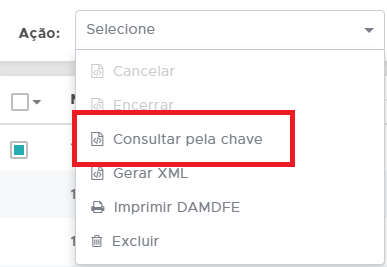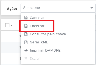 Para encerrar o MDF-e, marque o checkbox do mesmo, clique em Ação - Encerrar;