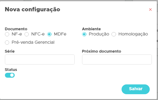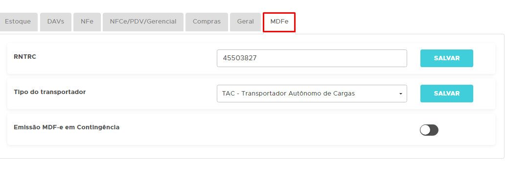 Após isso acesse a aba MDF-e e preencha os dados necessários.