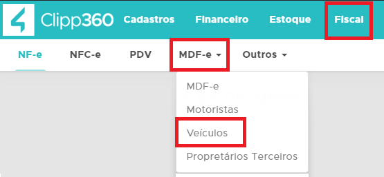 Para cadastrar os veículos, acesse Fiscal - MDF-e - Veículos;