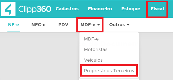 Para acessar, clique em Fiscal - MDF-e - Proprietários Terceiros;