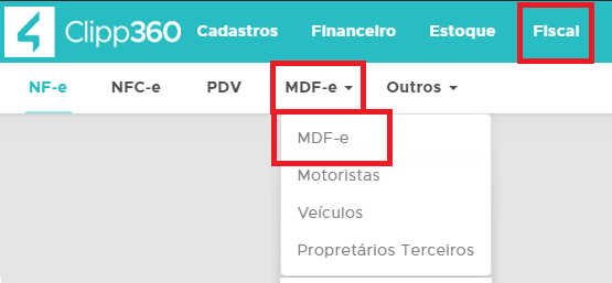 Para emissão do MDF-e, clique em Fiscal - MDF-e - MDF-e;