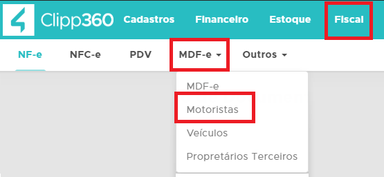 Para cadastrar os motoristas, clique em Fiscal - MDF-e - Motoristas;