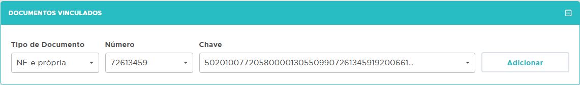 Nos Documentos vinculados escolha as notas fiscais que irão acompanhar as mercadorias transportadas, clique em Adicionar após digitar o número de cada uma;