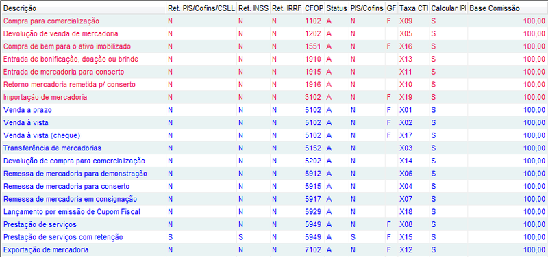 Deverá verificar a Taxa usada na Natureza de Operação: