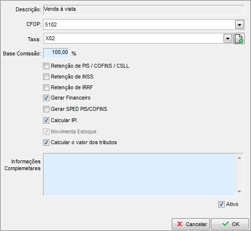 Verifique se o CFOP 5102 está cadastrado com a descrição Venda à vista;