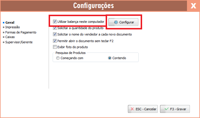 Sendo apresentado o valor correto do peso, feche a tela e clique em F3 Gravar.