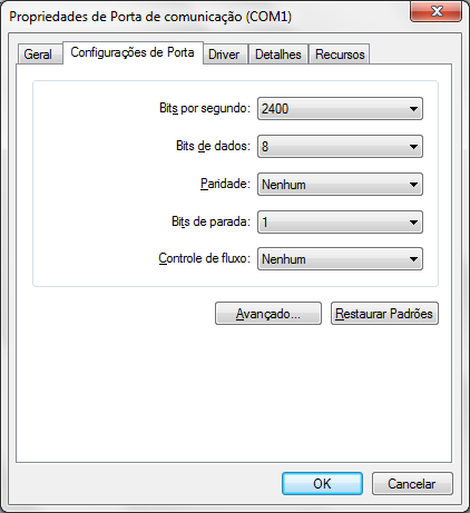 A mesma configuração indicada na tela anterior deverá ser informada na configuração da porta COM que a balança encontra-se conectada.