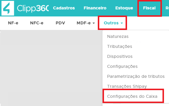 Para cadastrar o caixa, acesse o menu Fiscal - Outros - Configurações do caixa;