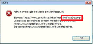 Ao efetuar a transmissão de um MDF-e ocorre a seguinte mensagem: Falha na validação do Modal do Manifesto: indAutoDesemp;