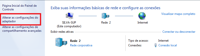 Ao lado esquerdo da tela, clique em Alterar as configurações do adaptador;