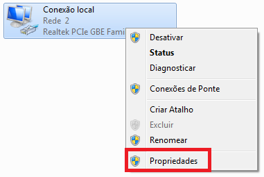 Clique com o botão direito do mouse na rede que seu micro está conectado, e acesse Propriedades;