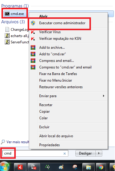 Clique no menu iniciar do windows e digite a palavra CMD, no CMD, clique com o botão direito - executar como administrador;