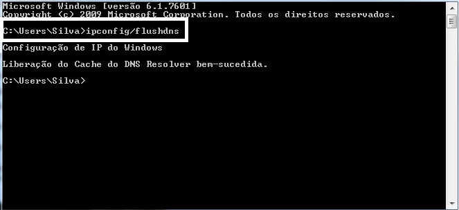 Agora, digite o seguinte comando: ipconfig /flushdns e pressione Enter;