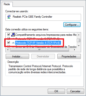 Clique duas vezes sobre o Protocolo TCP/IP Versão 4 (TCP/IPv4);