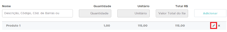Agora, siga até a aba de Produtos e clique no ícone do lápis, para realizar a edição;