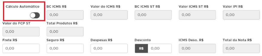 Caso queira adicionar os impostos na nota, siga até o campo de Cálculo dos Impostos e desabilite a função cálculo automático;