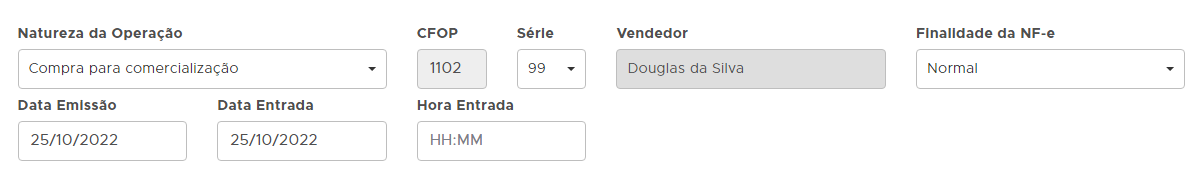 OBS: Se estiver emitindo uma importação, será necessário preencher todos os dados da importação: