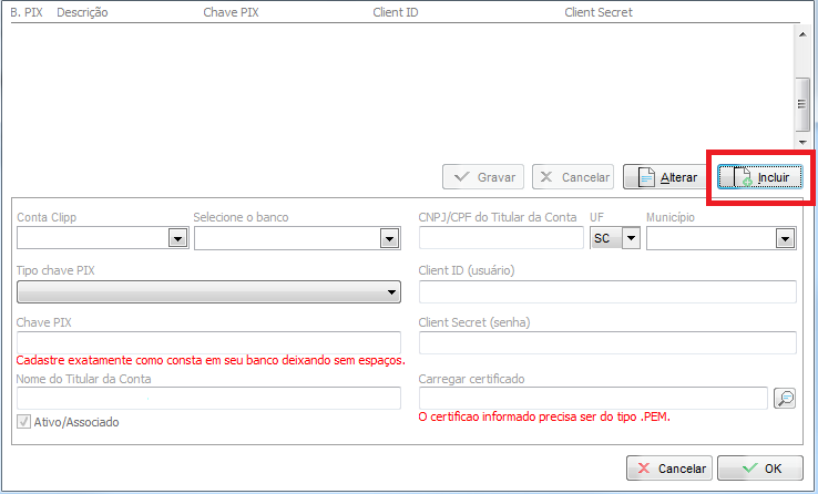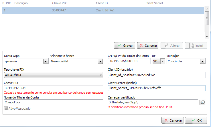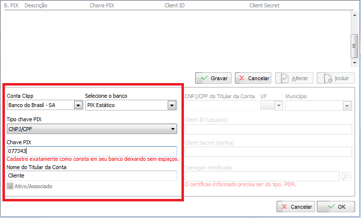 • Client ID (usuário) - Informe o Client ID gerado pelo banco;