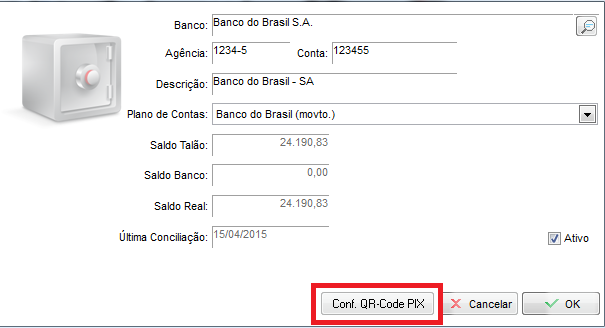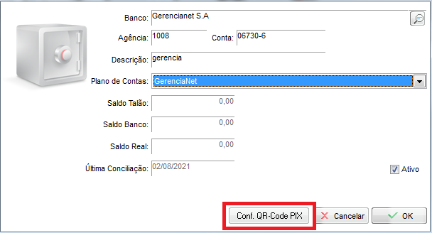 Após cadastrar o banco, clique no botão Conf. QR-Code PIX;
