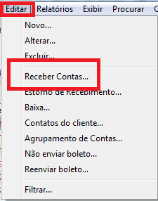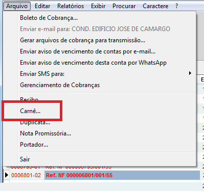 Clique na conta que deseja gerar o carnê e acesse Arquivo - Carnê;