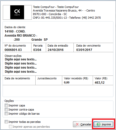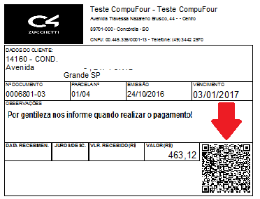 Veja que será impresso o QR Code para pagamento, a seguir, o cliente já poderá realizar o pagamento do carnê, lembre-se de pedir para que ele informe quando realizar o pagamento do mesmo, para que você possa receber a conta.