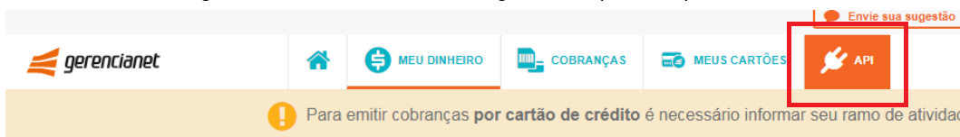 O primeiro passo é criar uma conta no banco digital GerenciaNet, acessando o link: https://gerencianet.com.br/ Após criar sua conta, clique no botão API;