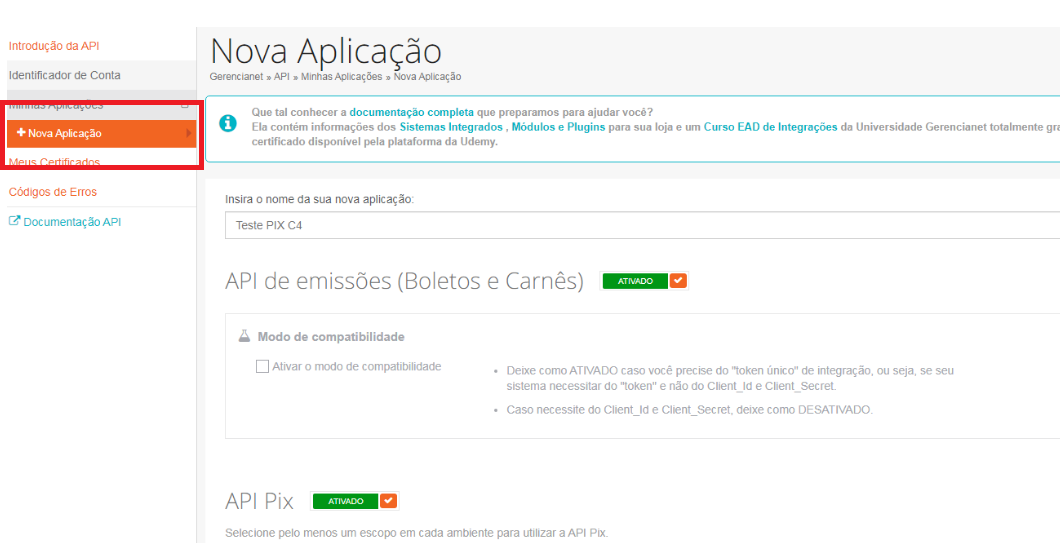 Criando certificado e credenciais no GerenciaNet para uso do PIX no Carnê